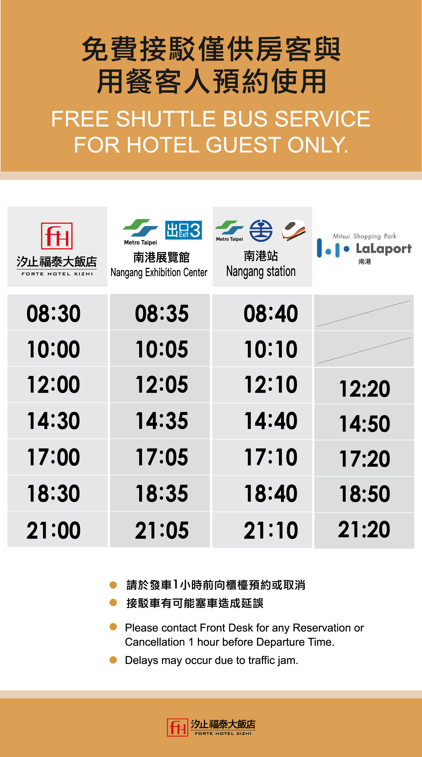 ※ The hotel reserves the right to adjust the shuttle schedule, departure times, and vehicle type as needed.
